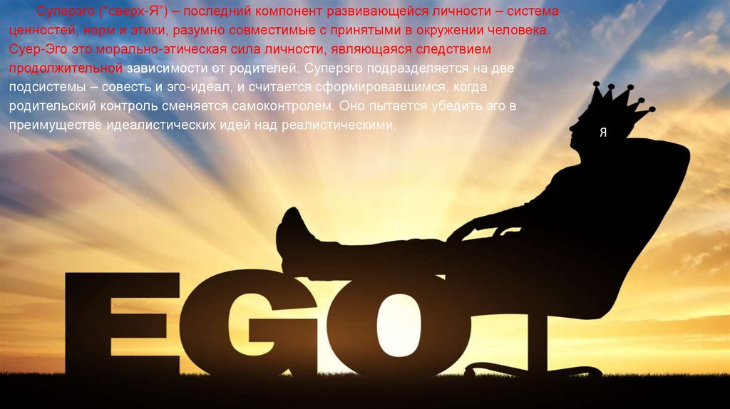 продолжительной зависимости от родителей. Суперэго подразделяется на две