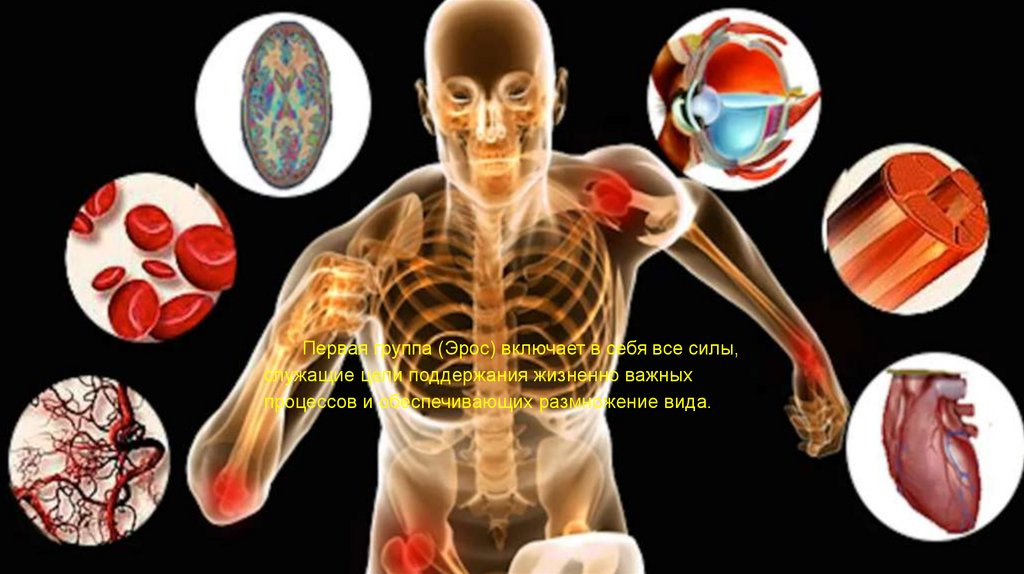 Первая группа (Эрос) включает в себя все силы,служащие цели поддержания жизненно важных