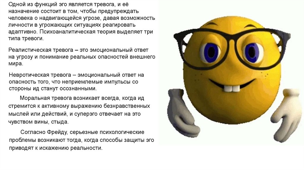 Одной из функций эго является тревога, и еёназначение состоит в том, чтобы предупреждать