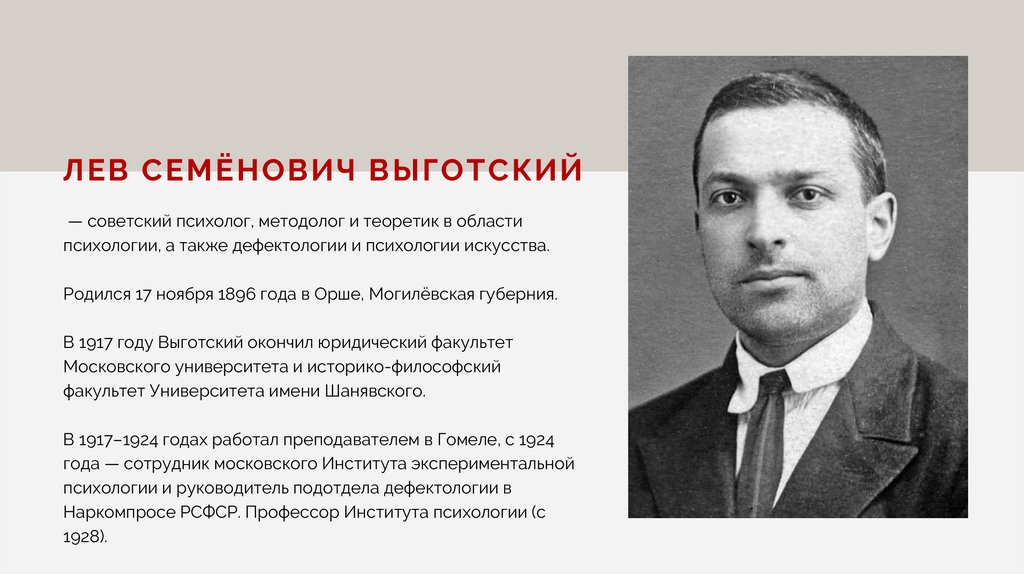 ЛЕВ СЕМЁНОВИЧ В ЫГО Т СК ИЙ— советский психолог, методолог и теоретик в области