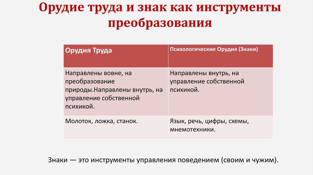 Орудиями овладения психикой стали знаки — психологические средства, помогающие запоминать