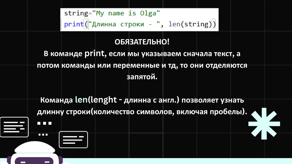 Команда len(lenght - длинна с англ.) позволяет узнать