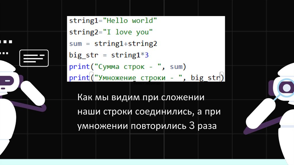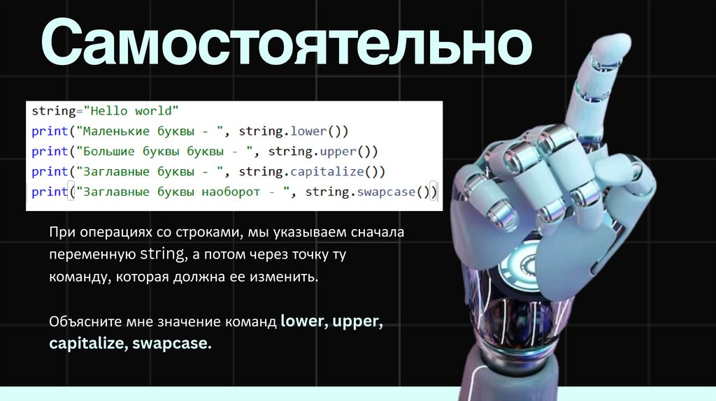 СамостоятельноПри операциях со строками, мы указываем сначала