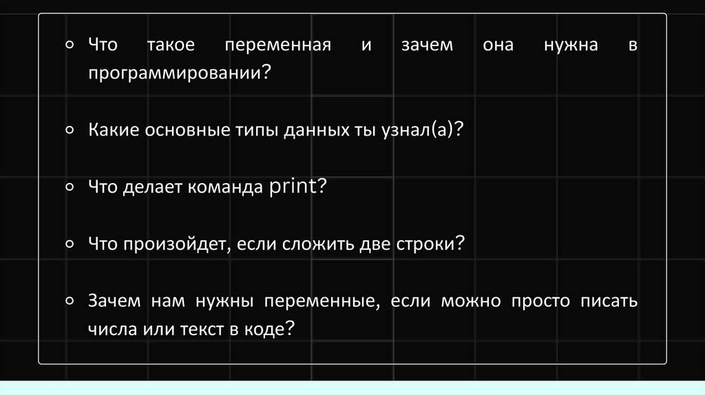 ⚬ Зачем нам нужны переменные, если можно просто писать