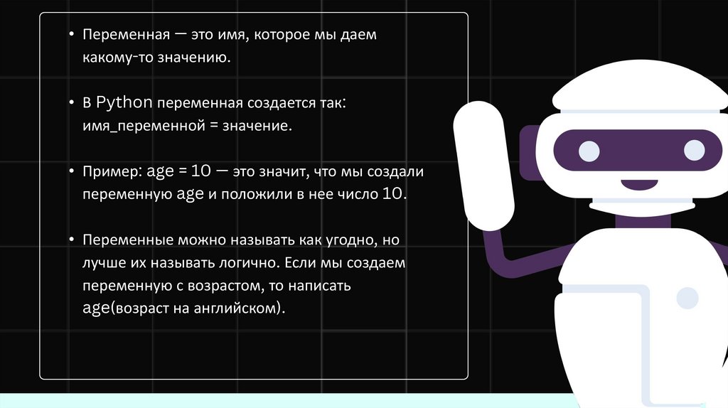• Переменная — это имя, которое мы даемкакому-то значению.