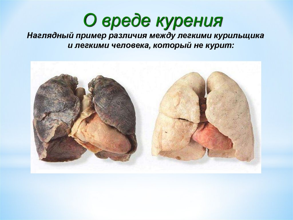 О вреде куренияНаглядный пример различия между легкими курильщика