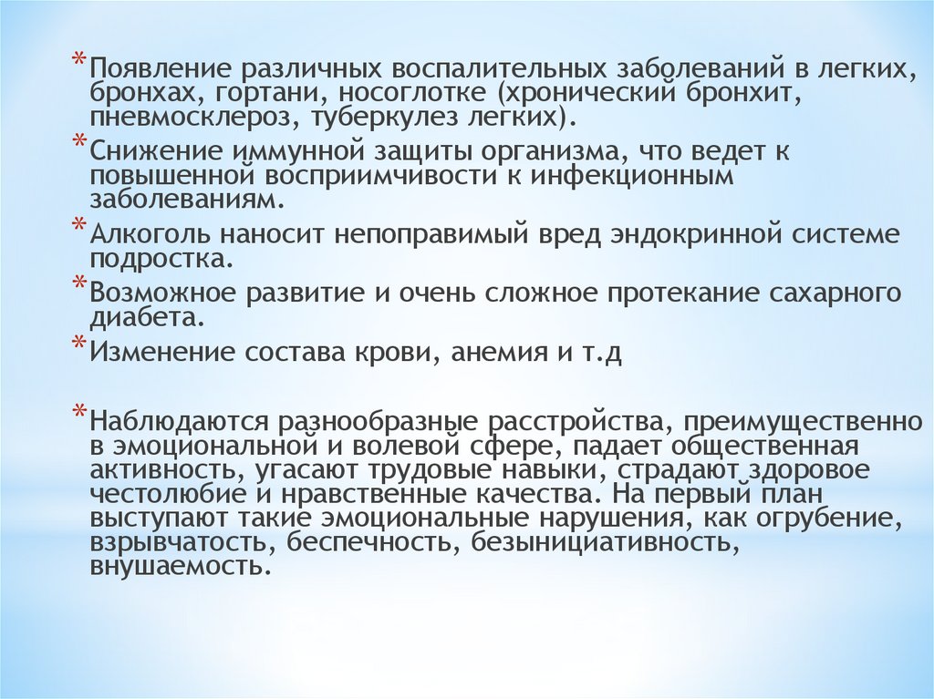* Алкоголь наносит непоправимый вред эндокринной системе