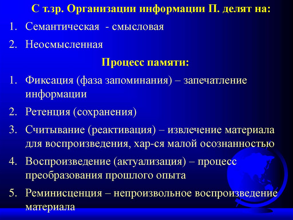 ПАМЯТЬэто психический процесс запечатления, сохранения и