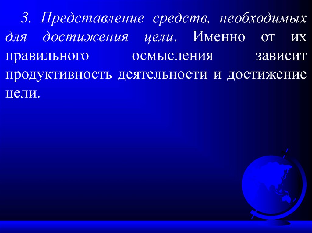 3. Представление средств, необходимыхдля достижения цели. Именно от их
