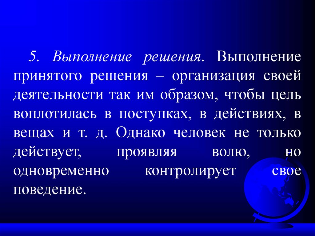 5. Выполнение решения. Выполнениепринятого решения – организация своей