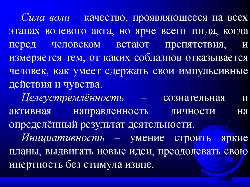 Сила воли – качество, проявляющееся на всехэтапах волевого акта, но ярче всего тогда, когда