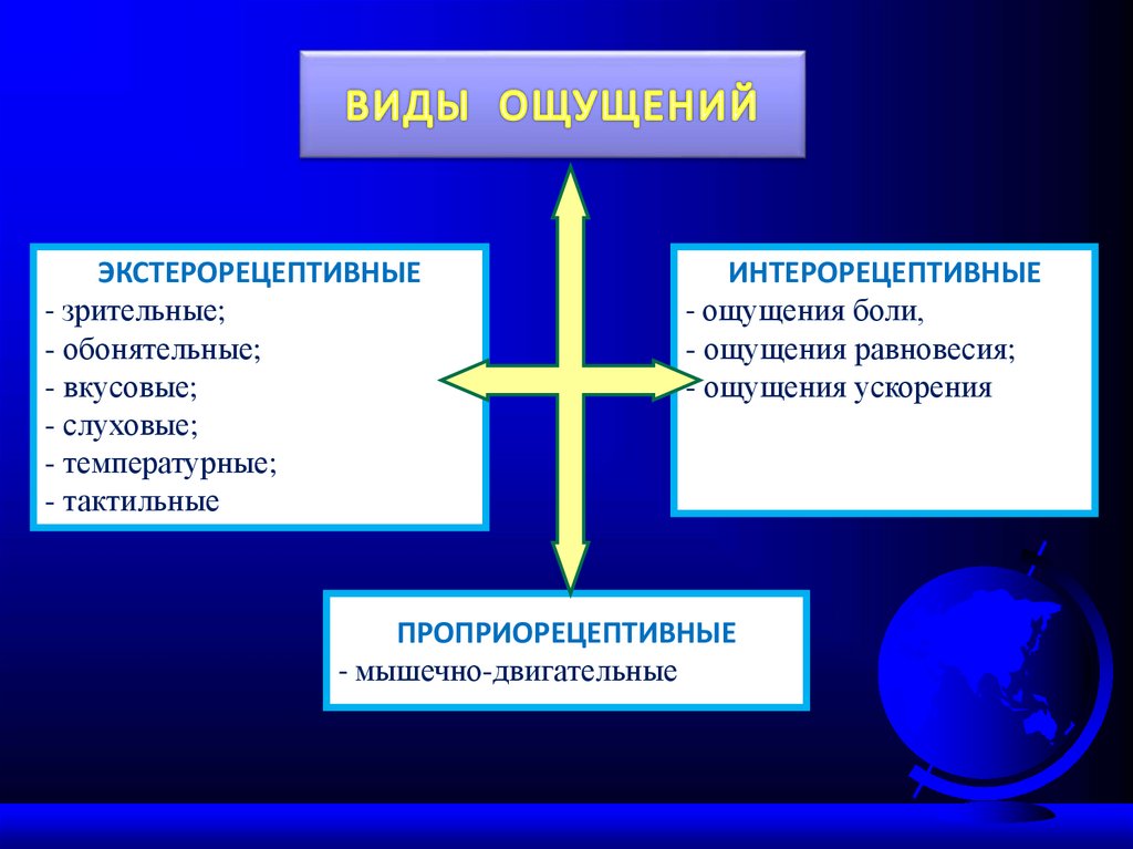 ЭКСТЕРОРЕЦЕПТИВНЫЕ- зрительные;