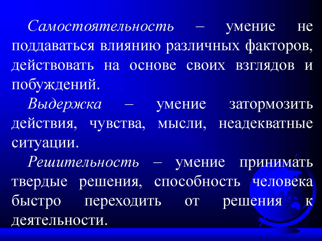 Самостоятельность – умение неподдаваться влиянию различных факторов,