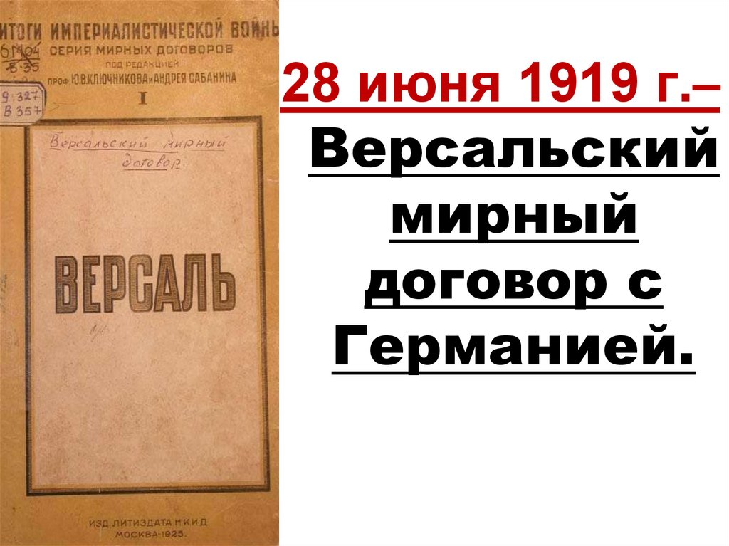 Версальский мирный договор 1919г. – итоговый документ Парижской мирной