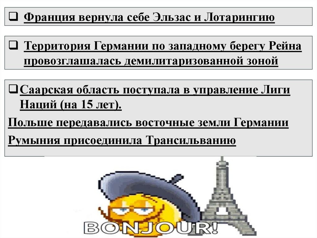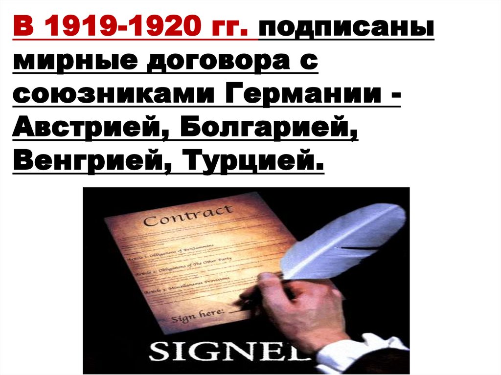 • Мирный договор с Германией.• Послевоенное урегулирование.