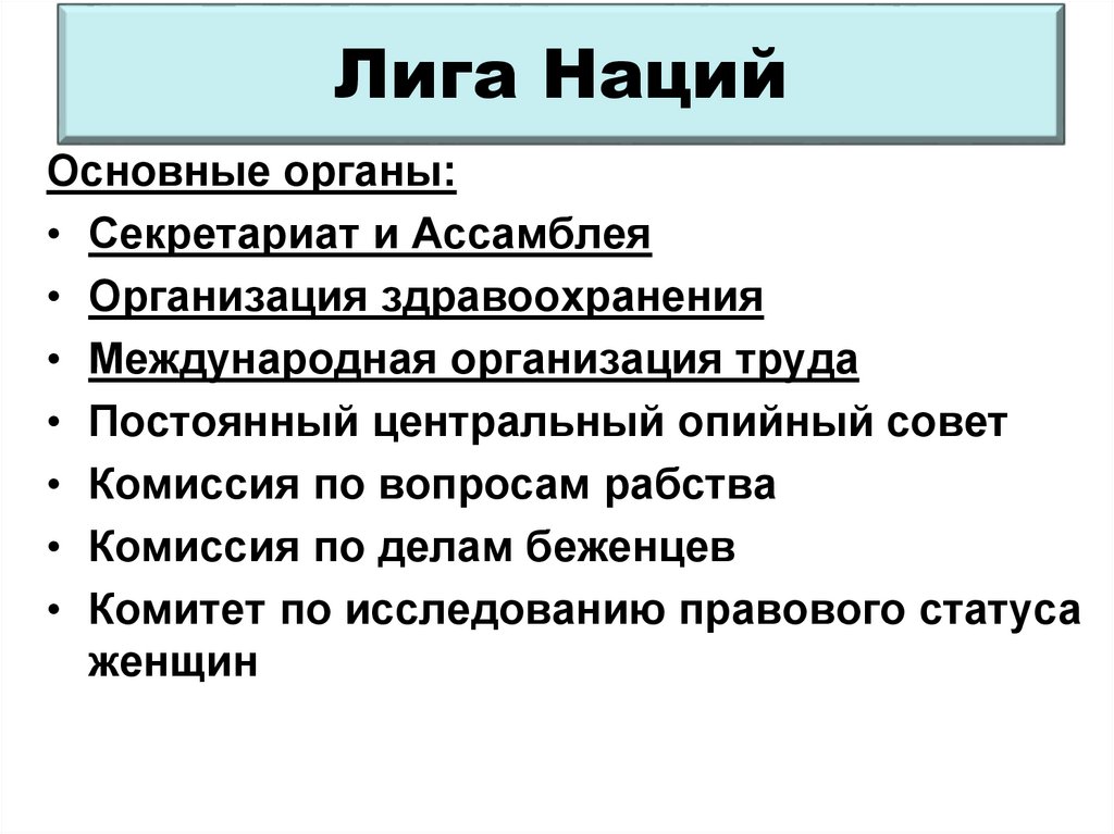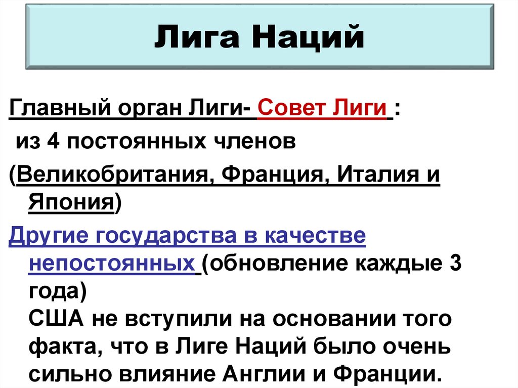 Лига НацийГлавный орган Лиги- Совет Лиги :
