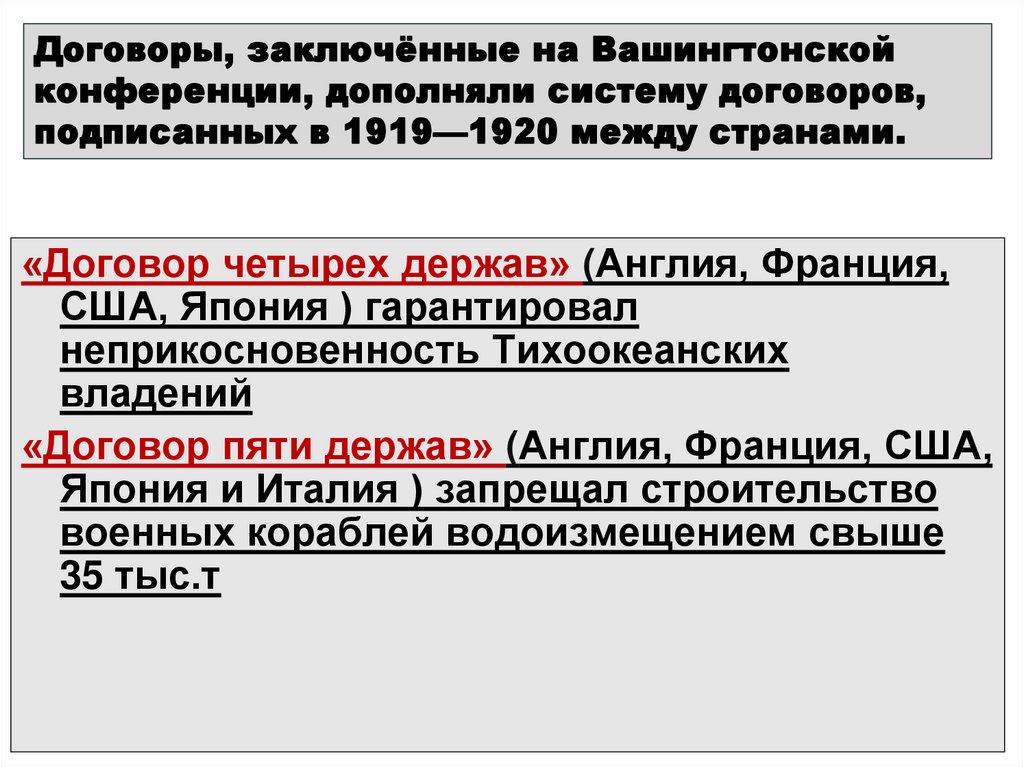 Договоры, заключённые на Вашингтонскойконференции, дополняли систему договоров,