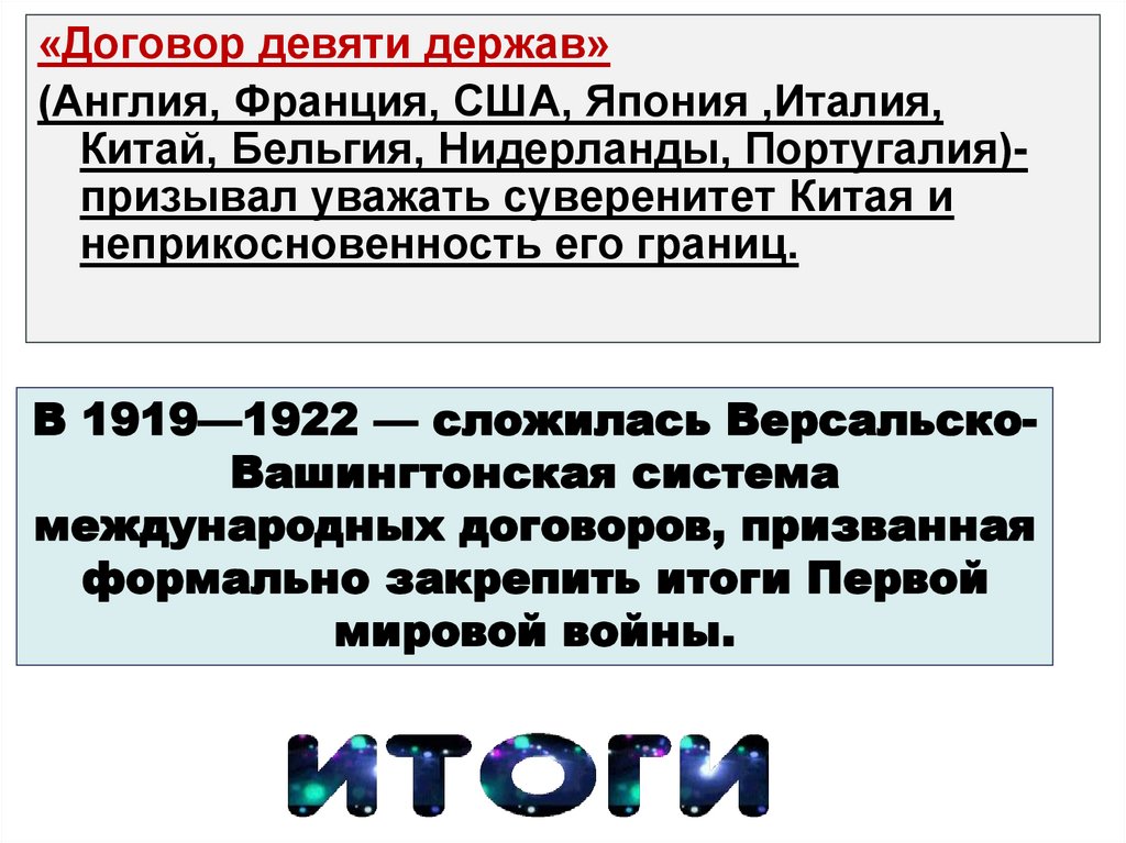 «Договор девяти держав»(Англия, Франция, США, Япония ,Италия,