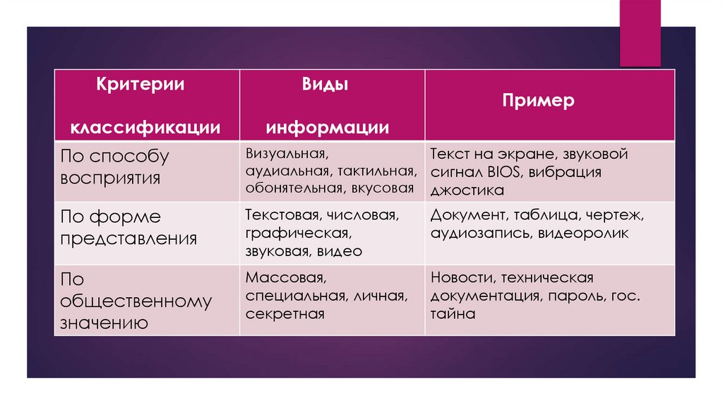 1. Классификация информации