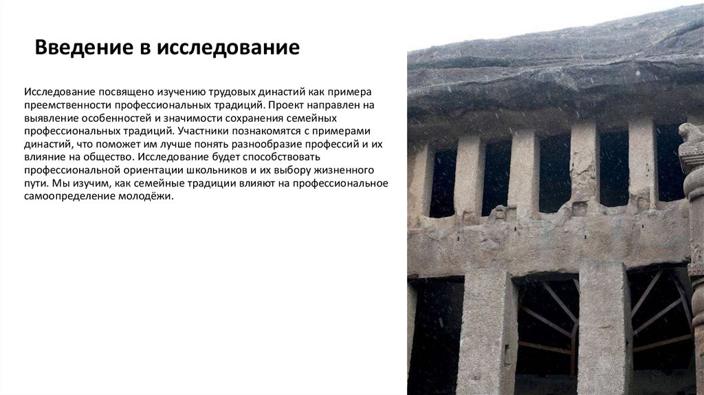 Введение в исследованиеИсследование посвящено изучению трудовых династий как примера