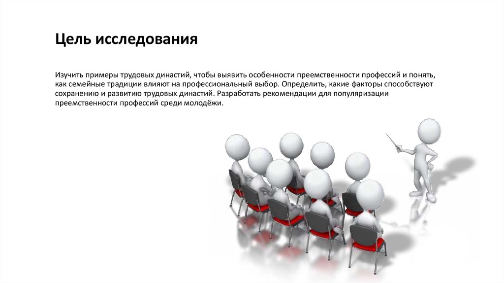 Цель исследованияИзучить примеры трудовых династий, чтобы выявить особенности преемственности профессий и понять,