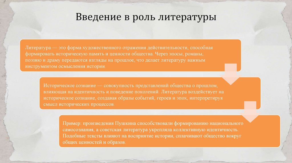 Введение в роль литературыЛитература — это форма художественного отражения действительности, способная