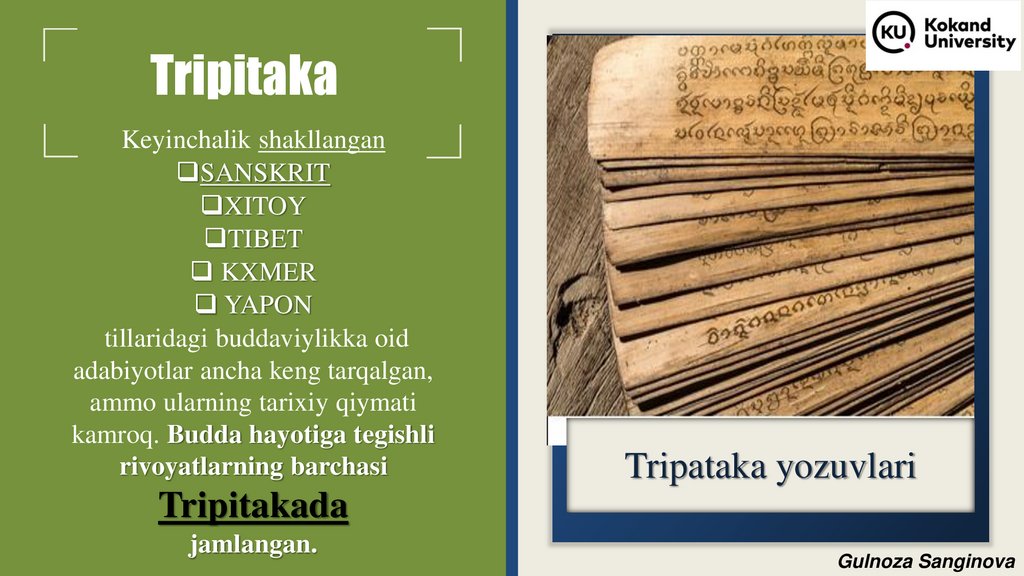 2. Tripitakan va buddaviylikning muqaddas