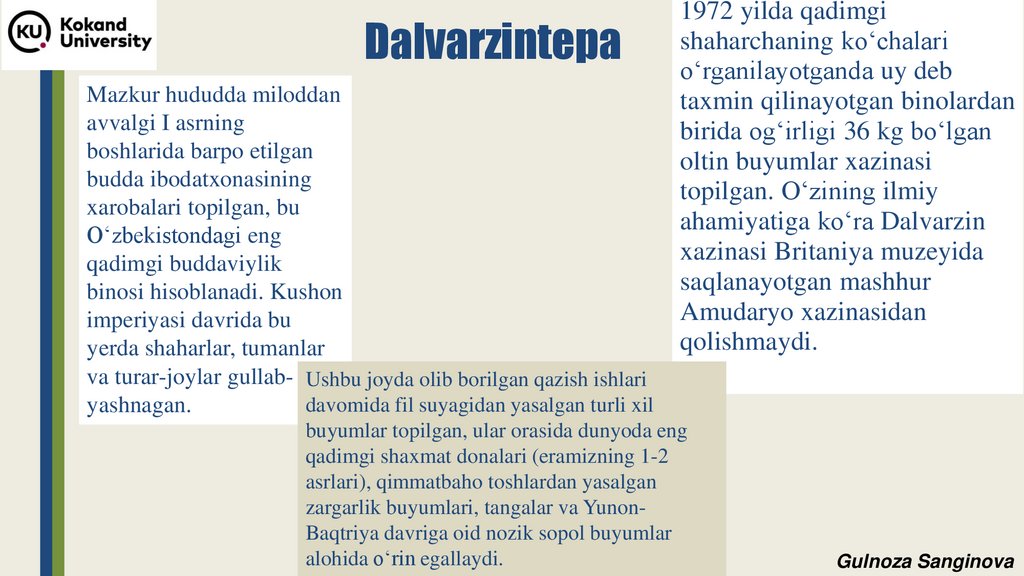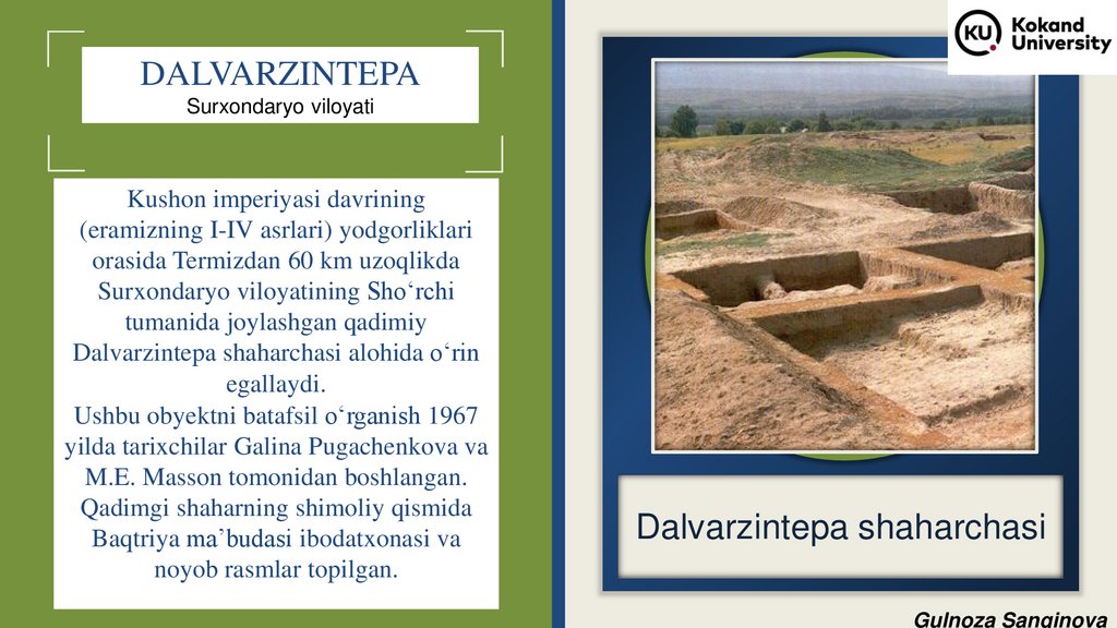 ildizlari (Qaratepa, Fayoztepa, Dalvarzintepa)