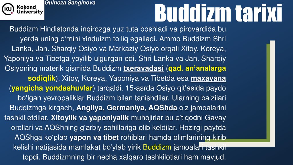 Gulnoza SanginovaBuddizm tarixi