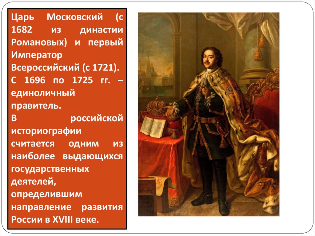 Цель урока: формирование представления учащихся о Петре I какгосударственном деятеле, реформаторе и создателе Великой Российской