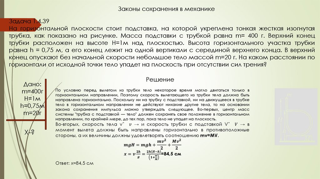 Законы сохранения в механикеЗадача 1.4.39