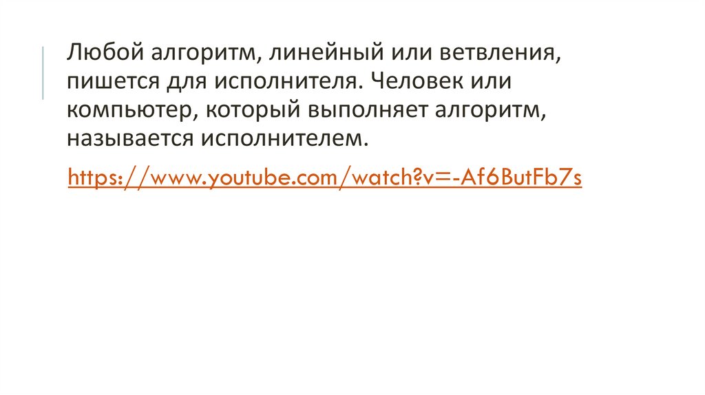 Любой алгоритм, линейный или ветвления,пишется для исполнителя. Человек или
