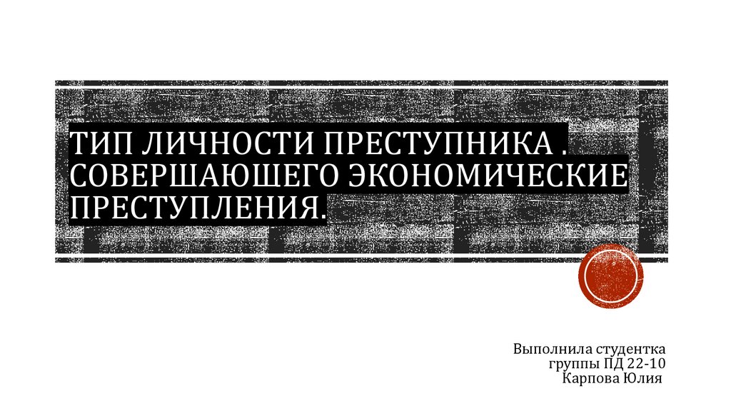 ТИП ЛИЧНОСТИ ПРЕСТУПНИКА ,СОВЕРШАЮЩЕГО ЭКОНОМИЧЕСКИЕ