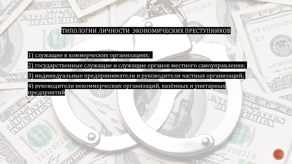 ТИПОЛОГИИ ЛИЧНОСТИ ЭКОНОМИЧЕСКИХ ПРЕСТУПНИКОВ1) служащие в коммерческих организациях;