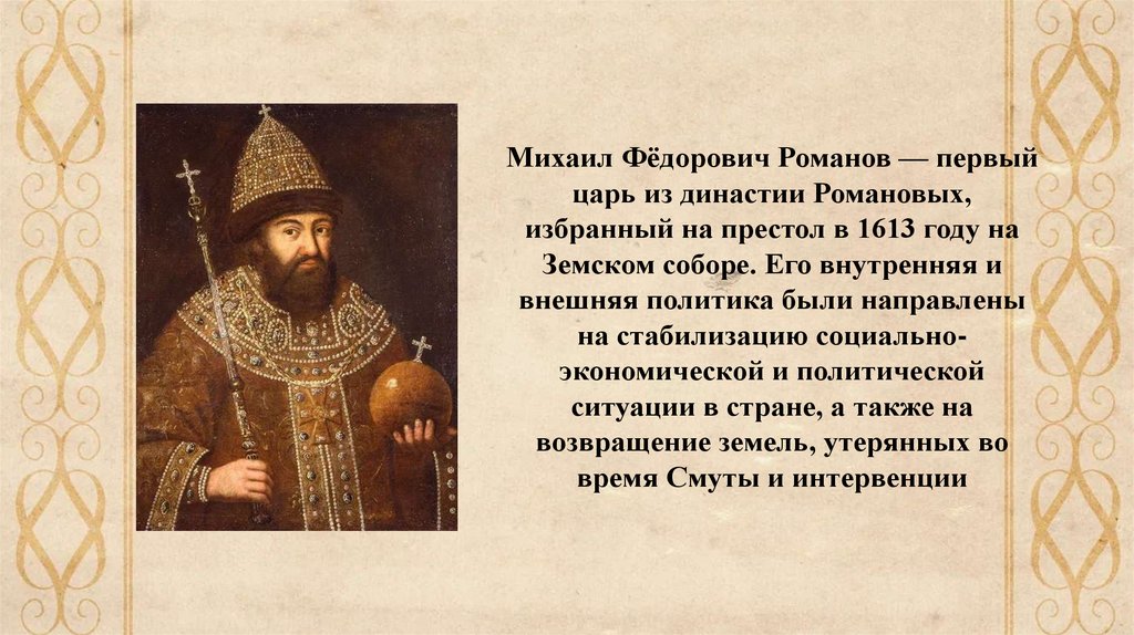 Первые Романовы. МихаилФедорович (внутренняя и внешняя