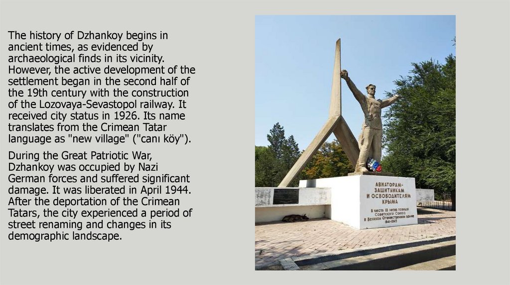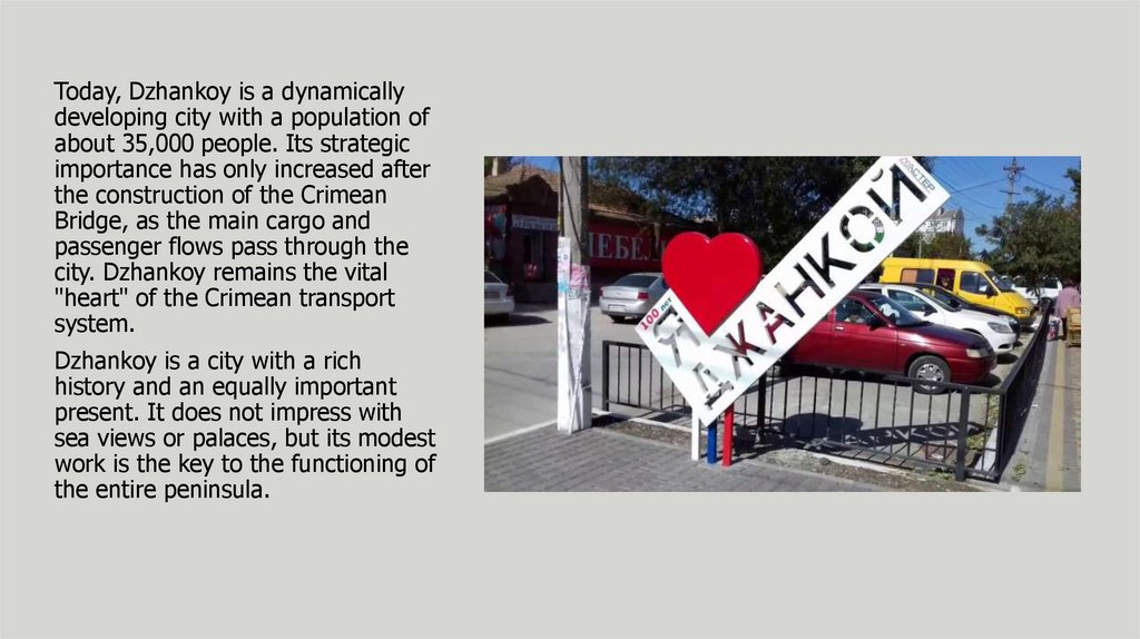 Today, Dzhankoy is a dynamicallydeveloping city with a population of