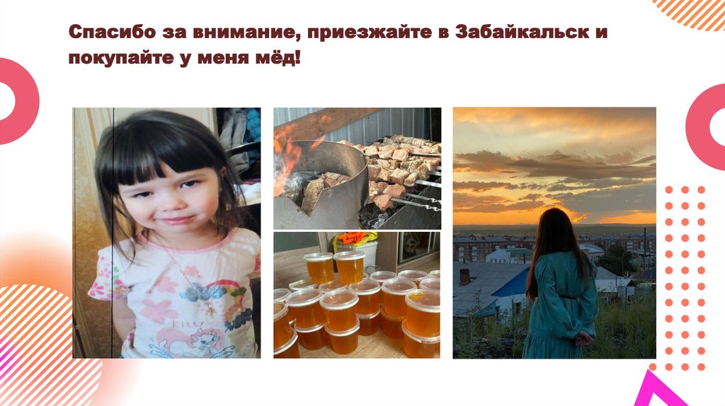 Спасибо за внимание, приезжайте в Забайкальск ипокупайте у меня мёд!