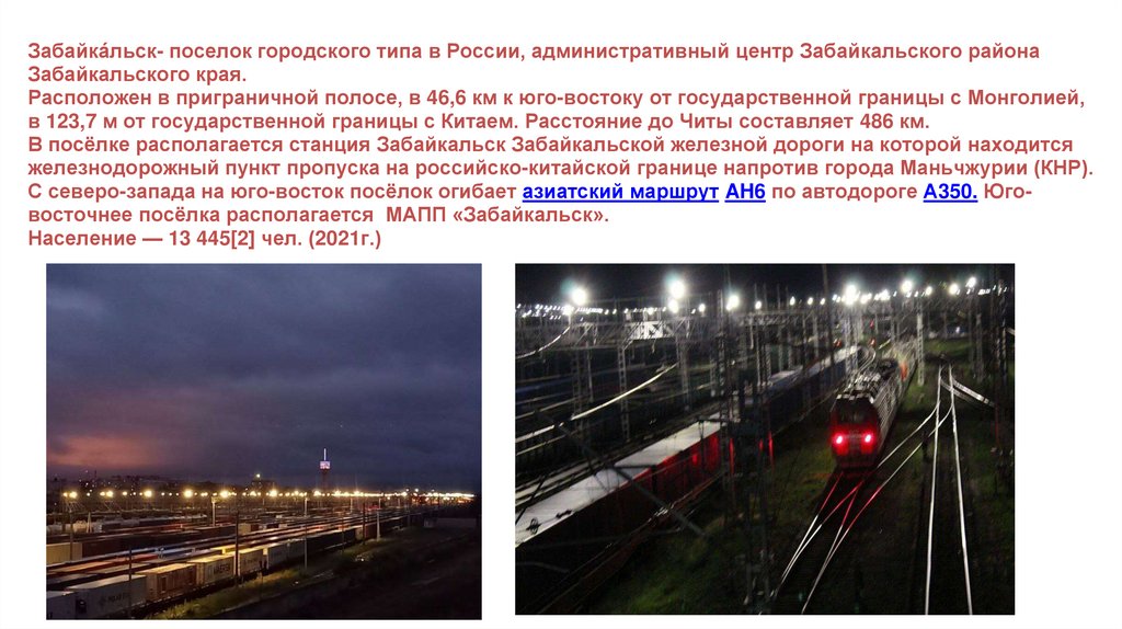 Посёлок Забайкальск (Забайкальский край) знаменитприграничным положением, историей, инфраструктурой и