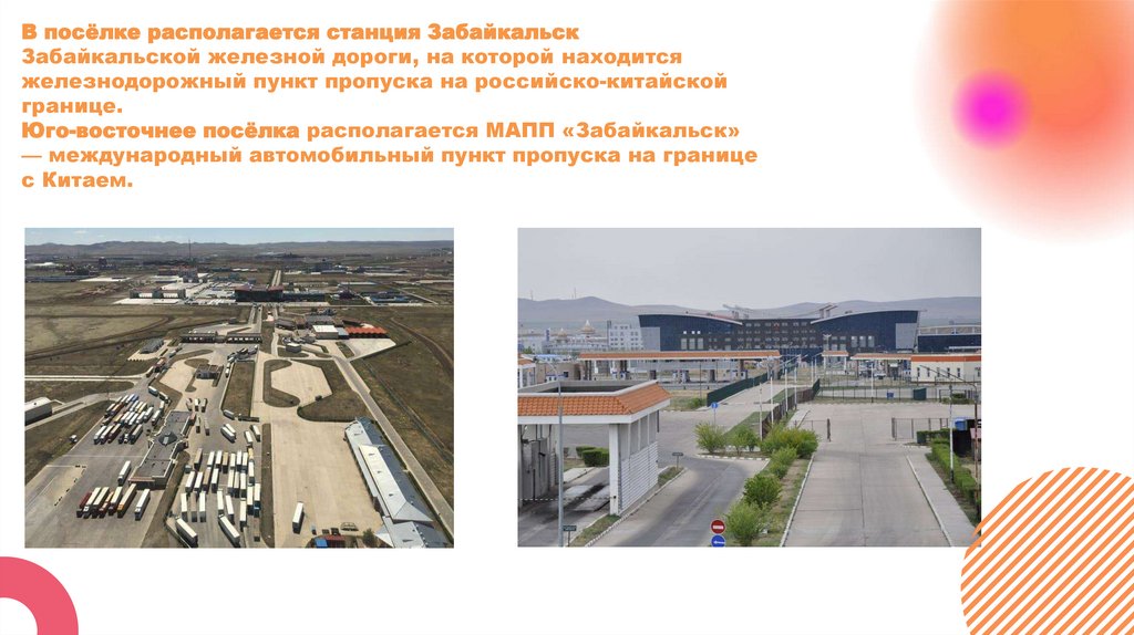 Юго-восточнее посёлка располагается МАПП «Забайкальск»