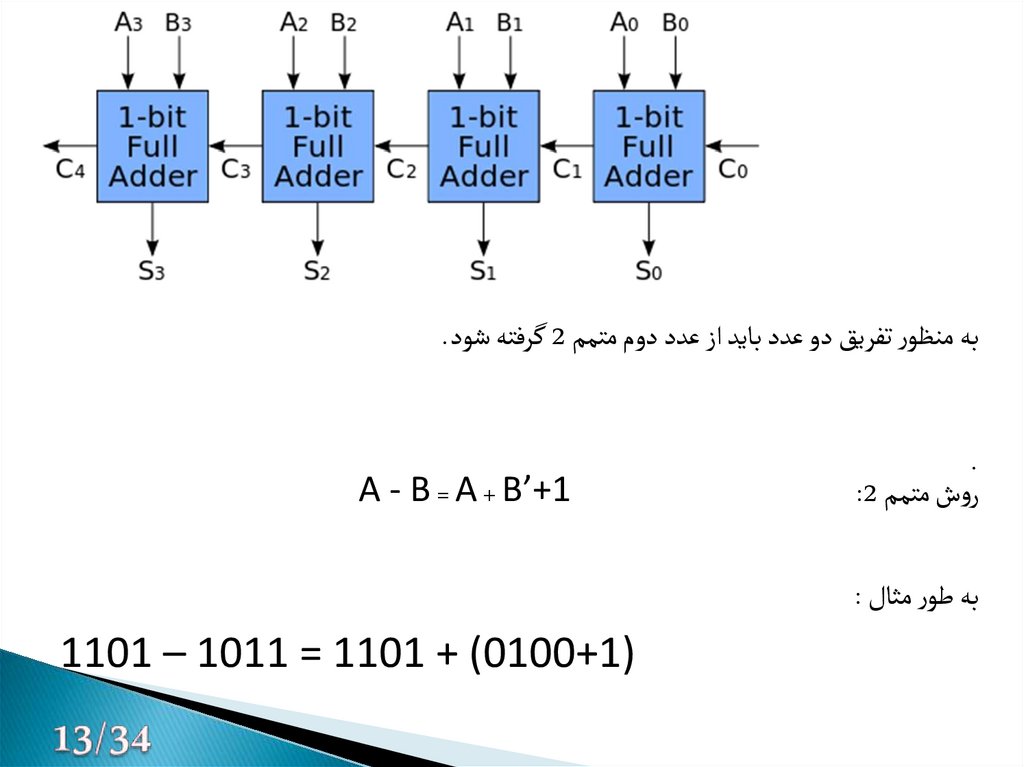 به منظور تفریق دو عدد باید از عدد دوم متمم 2گرفته شود..
