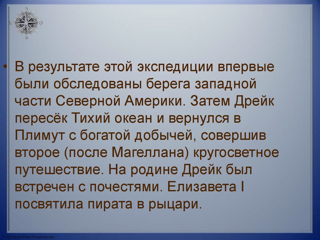 © Дегтярёва Юлия Владимировна7. Кругосветное плавание