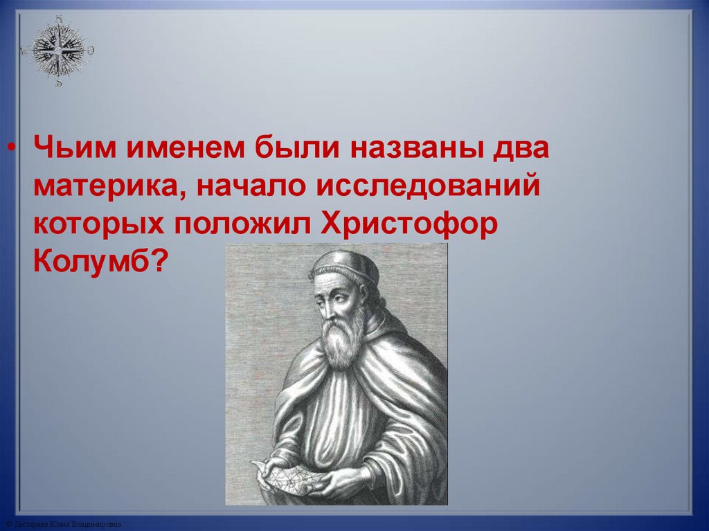 • Чьим именем были названы дваматерика, начало исследований