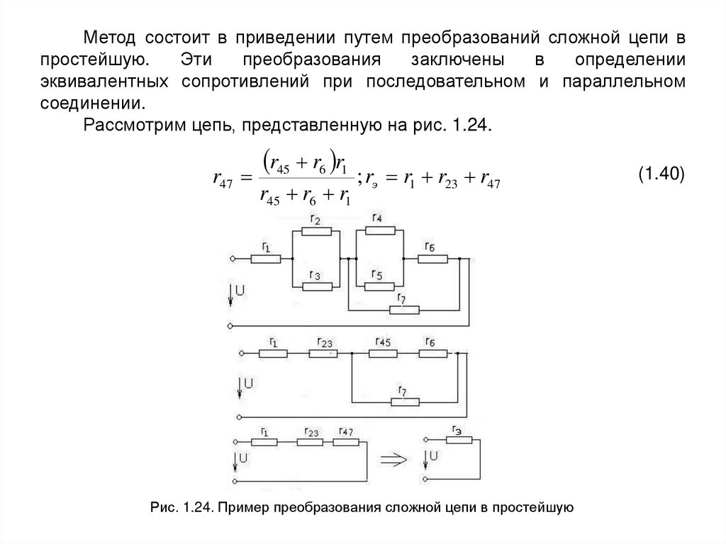 Рис. 1.24. Пример преобразования сложной цепи в простейшую