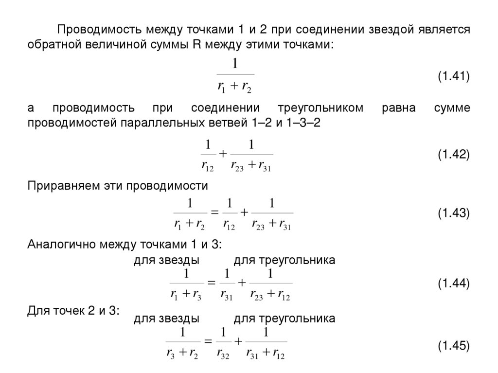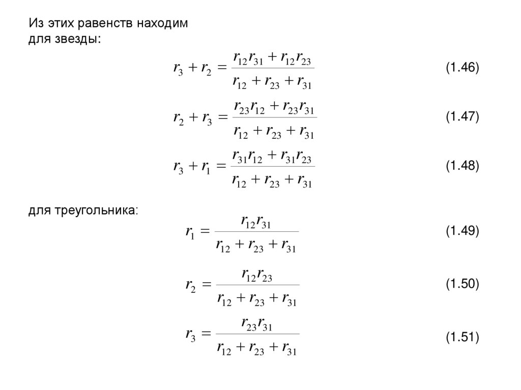 сопротивлений r1, r2, r3 треугольной сопротивлениями r12, r23, r31,