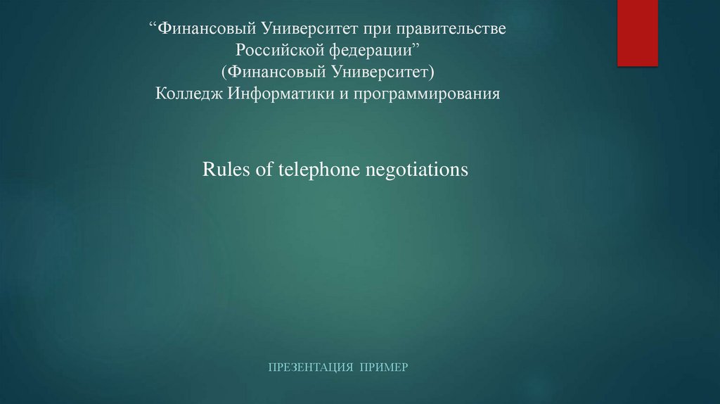Rules of telephone negotiationsПРЕЗЕНТАЦИЯ ПРИМЕР