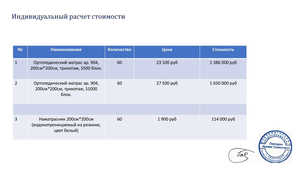 Индивидуальный расчет стоимости№