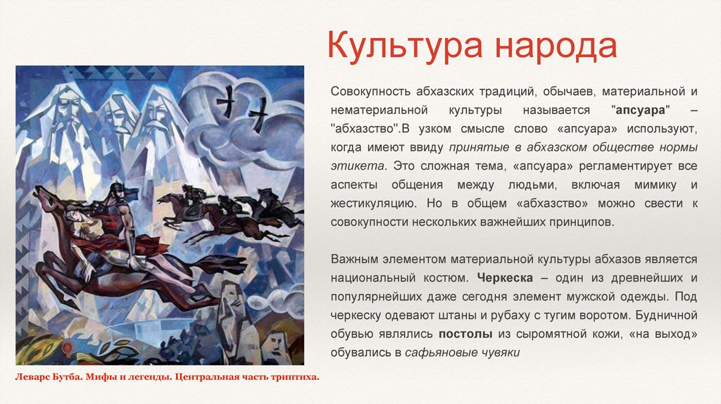 Культура народаСовокупность абхазских традиций, обычаев, материальной и