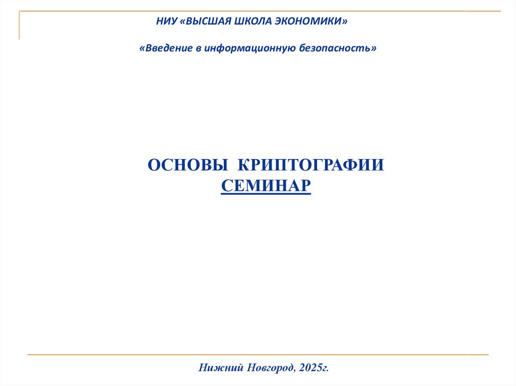 ОСНОВЫ КРИПТОГРАФИИ