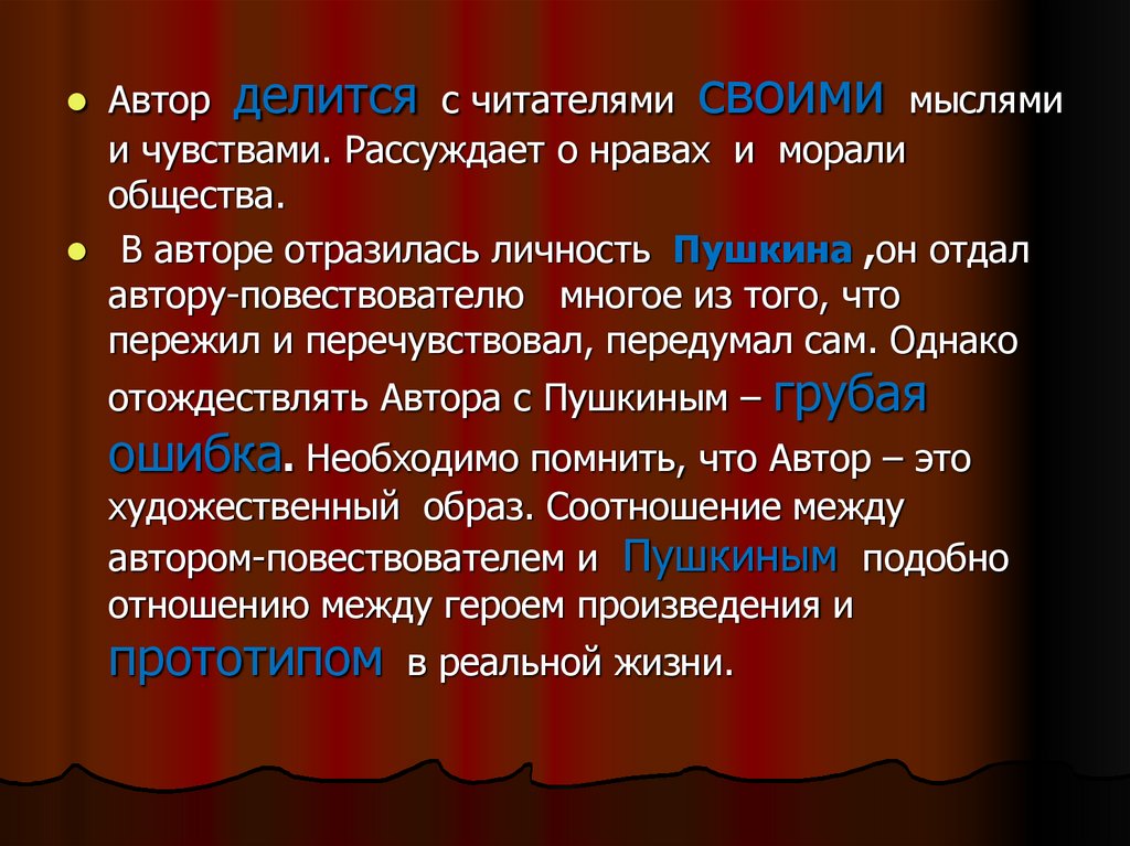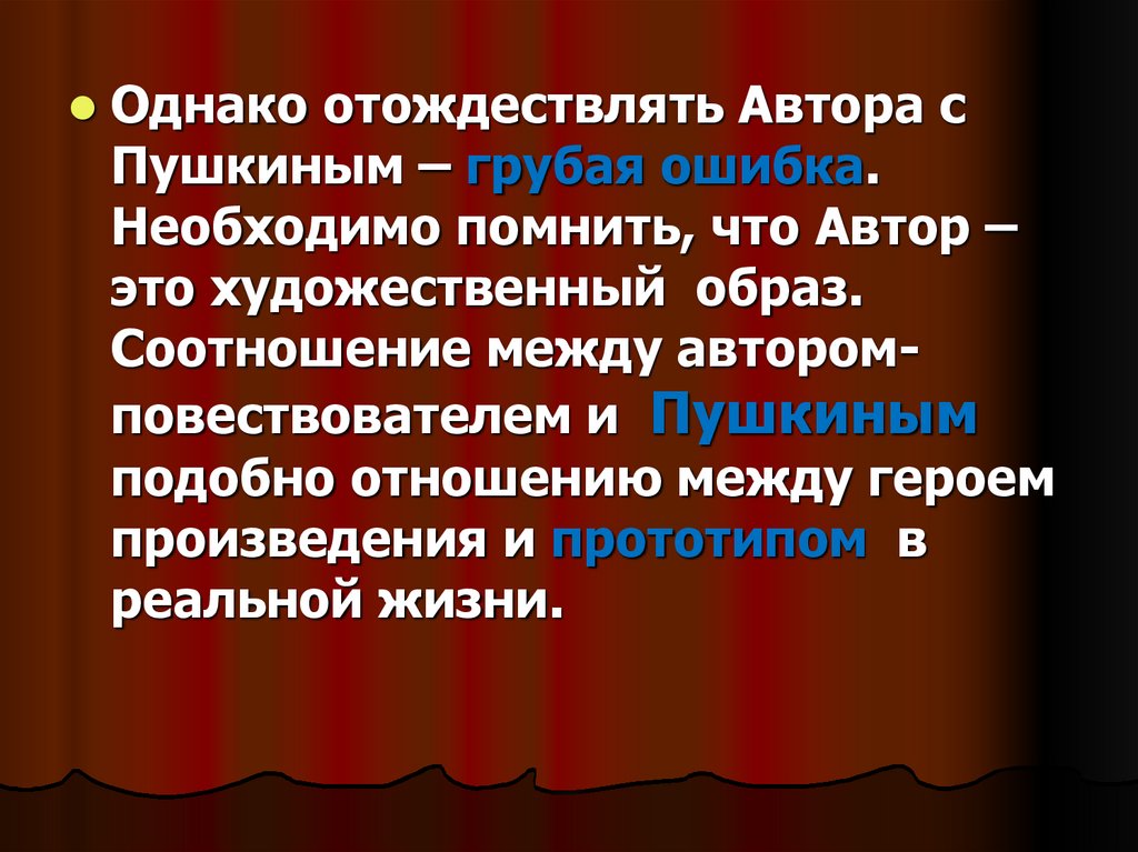 Однако отождествлять Автора сПушкиным – грубая ошибка.