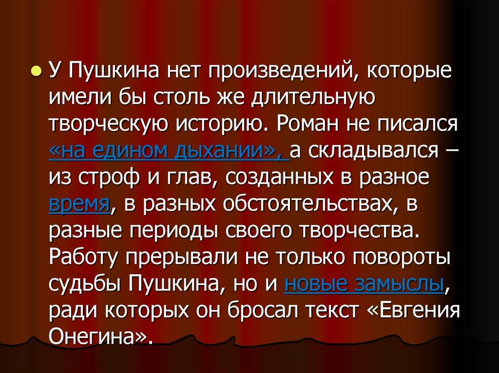 У Пушкина нет произведений, которыеимели бы столь же длительную